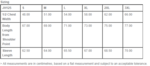 Half Chest Measurement 42 44 46.5 49 51.5 54 56.5 59.5 63 66.5 70